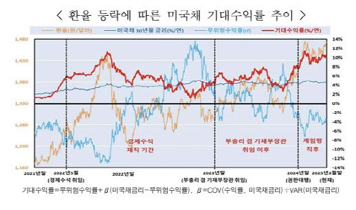 경제정의실천시민연합에 따르면 미국채 기대수익률은 최 부총리가 경제수석으로 있는 동안 연 평균 5.08%, 기재부 장관 재직 이후에는 연 5.46% 올랐고 작년 12월 비상계엄령 직후 지난달 말까지 연 평균 9.78%로 급등한 것으로 나타났다.