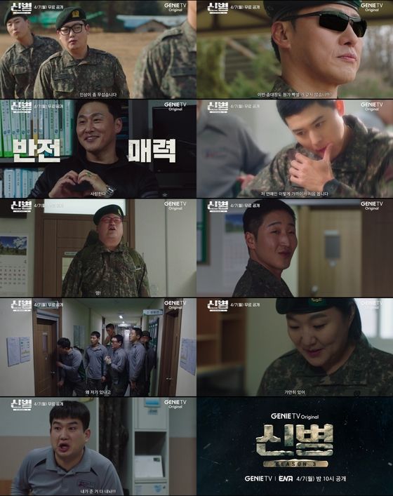 지니TV오리지널 드라마‘신병3’(연출 민진기·조제욱,극본 윤기영·강고은,원작 장삐쭈,기획KT스튜디오 지니,제작 에이투지엔터테인먼트·스토리아일랜드)가 첫 공개를 나흘 앞둔3일(목), ‘웃음 특수부대’신병즈의 난이도 급상승한 군생활을 예고한 하이라이트 영상을 공개해 기대를 뜨겁게 달군다.