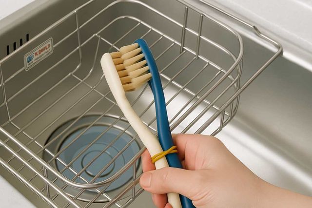 또한 다 쓴 칫솔 두 개를 고무줄로 고정한 후, 그 사이에 수세미 조각을 끼우면 텀블러 전용 수세미로도 활용 가능하다. 손이 닿지 않는 깊은 컵이나 물병 안쪽까지 손쉽게 닦을 수 있는 DIY 청소도구가 되는 셈이다.