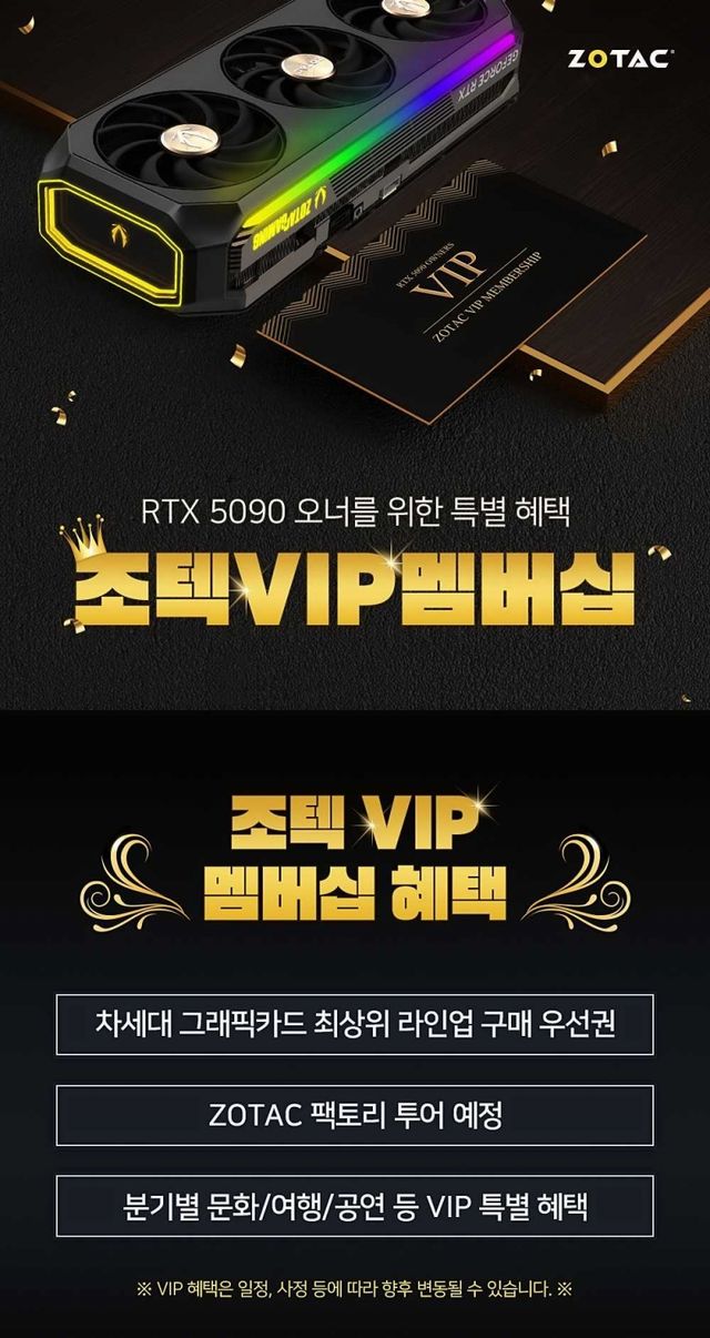 조텍코리아는 자사의 상위 그래픽카드 구매자를 대상으로 다양한 혜택을 제공하는 ZOTAC VIP 멤버십을 운영한다. 해당 프로그램은 RTX 50 시리즈 그래픽카드 구매자 중 정식 유통 제품 실사용자에 한해 참여할 수 있으며, 중고 구매자는 대상에서 제외된다. 실사용 여부는 혜택 신청 시마다 인증 절차를 통해 확인된다.