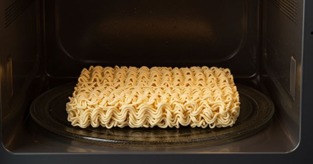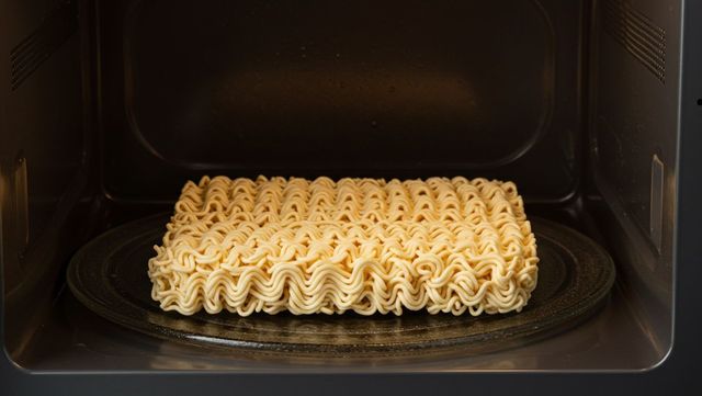라면 사리를 전자레인지에 넣은 모습. / 위키트리