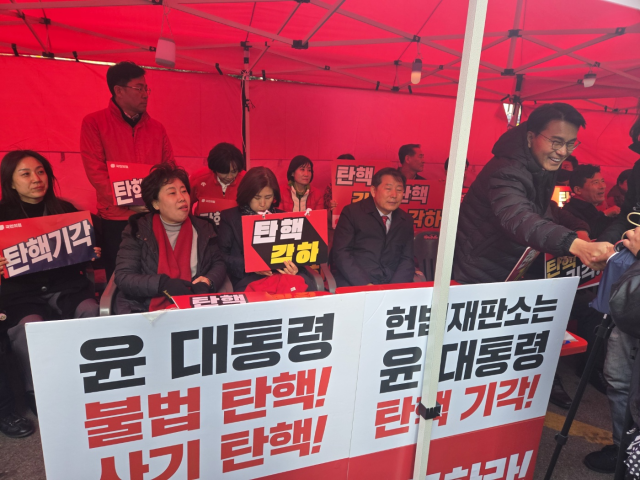 일부 참가자들은 선고가 진행되는 다음날까지 헌재 인근에서 버티겠다며 인도에 텐트를 친 가운데, 국민의힘 소속 정치인들도 텐트를 치고 철야농성을 예고했다. 윤 대통령 탄핵에 반대하는 국민의힘 당협위원장 89명은 이날 집회 인근에서 기자회견을 열고 "탄핵 반대 당협위원장 전원이 농성장 텐트엥서 밤을 새우며 내일 있을 결정 선고를 기다릴 것"이라고 했다. 농성장에는 윤상현·김미애·이철규·김승수 등 국민의힘 소속 의원들도 자리를 잡았다.