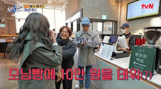 송은이는 "모닝빵 10만 원어치. 우리가 욕심부렸나? 미안해"라며 전했고, 유재석은 "아침부터 비싸긴 한데 이게 안 그러면 유지가 안 돼"라며 못박았다.