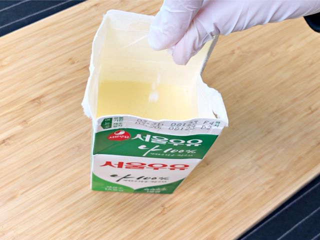 500ml우유갑에 우유를 반만 남겨 주시고요.