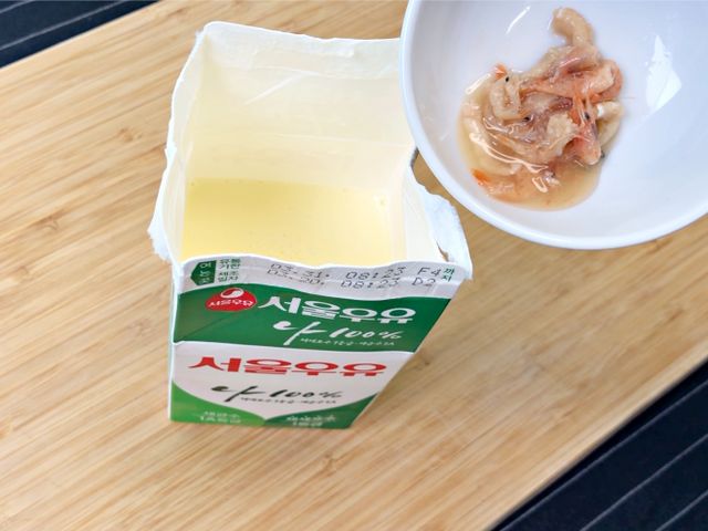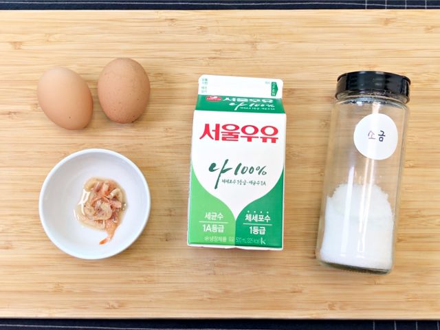 재료는 우유(500ml), 계란2개, 소금, 새우젓 준비했어요.