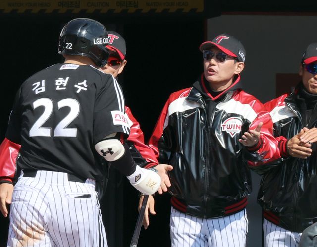 김현수는 지난달 27일 잠실 한화전 8회 2사 만루에서 2타점 결승타를 친 다음 날 선발 명단에서 또 제외됐다. 염 감독은 상대 왼손 선발 투수(로건 앨런)가 나서는 데다, 휴식 차원의 결정이라고 설명했다. 같은 날 4경기 연속 무안타에 그친 좌타자 오지환을 빼고 우타자 구본혁을 내보냈다.
