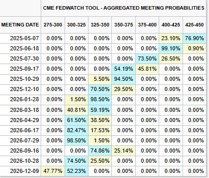 이러한 시장 충격 속에서, 투자자들은 올해 6월부터 남은 기간 동안 연준이 네차례 금리 인하를 단행할 것이라는 베팅에 나섰다. 시ㅣ카고파생상품거래소그룹(CME Group)의 페드워치(FedWatch) 툴에 따르면 오는 6월 연준이 금리인하를 단행할 가능성은 99.1%를 반영 중이다. 7월 연이어 25bp를 인하할 확률도 73.5%에 달한다. 이후 9월 인하가능성은 54.19%, 12월 추가 인하가능성은 70.5%다.