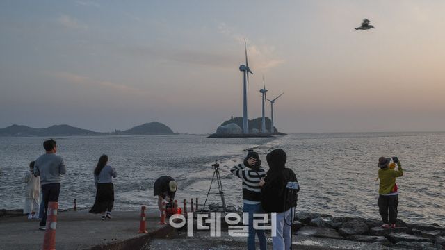탄도항의 전경을 더 빛나게 하는 요소는 3대의 흰색 ‘해상 풍력 발전기’다. 누에섬으로 가는 진입로에 설치한 높이 100m의 거대한 풍력발전기 3기는 서해를 배경 삼아 유유히 움직인다. 바람을 에너지로 바꾸는 기계적인 움직임이지만 자연과 인간이 어우러진 풍경으로 시선을 잡아끌면서 전력 생산은 물론 포토존의 역할도 톡톡히 하고 있다.