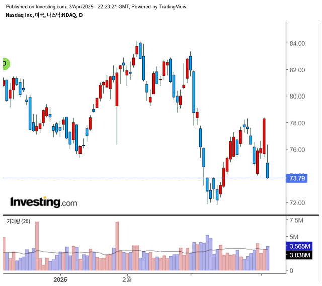 트럼프 대통령의 관세 부과 예고에 나스닥 종합지수가 급락을 기록했다. /사진=인베스팅닷컴