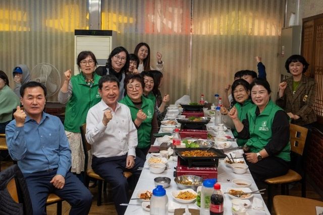 한국부인회 회원들은 검정고시를 앞둔 청소년들에게 지역 내 한 식당에서 삼겹살을 대접하며 응원의 마음을 전했다.