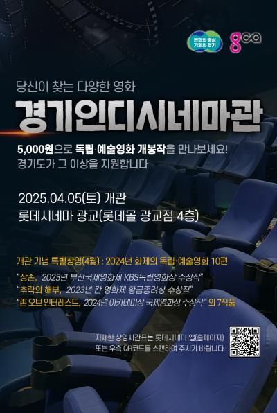 [와이뉴스] 경기도가 4월 5일 롯데시네마 광교 1관(롯데몰 광교점 4층)에 독립·예술영화전용관인 ‘경기인디시네마관’을 개관한다.