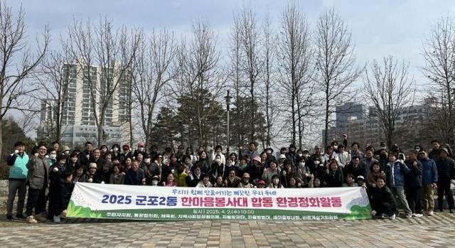 8개 직능단체(주민자치회, 통장협의회, 지역사회보장협의체, 체육회, 자율방재단, 자율방범대, 새마을부녀회, 바르게살기위원회)로 구성된 군포2동 한마음봉사대는 지역사회를 위해 다양한 봉사활동을 전개하고 있으며 이날은 11번째를 맞은 군포철쭉축제를 앞두고 관내의 취약지역을 청소하기 위해 140여 명이 모여 대규모 환경정화활동을 진행했다.