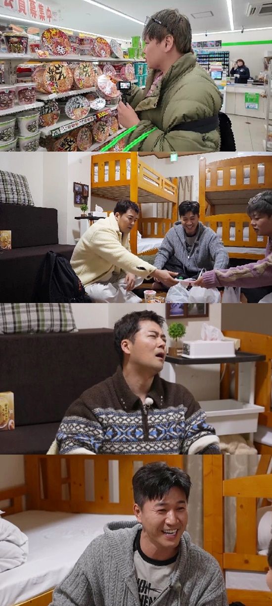 야식 구입을 마친 세 사람은 곽튜브가 추천한 가성비 숙소에서 도미빵, 매운 라면 등 편의점 음식과 김종민이 사온 일본식 교자, 타코야끼 등을 한가득 풀어놓고 먹방에 돌입한다.