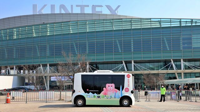 행사장 외부에서 진행되고 있는 자율주행셔틀 탑승체험. ⓒ 롯데이노베이트