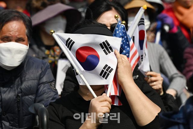 | [이데일리 방인권 기자] 헌법재판소가 윤석열 전 대통령 파면을 선고한 4일 서울 용산구 한남동 관저 앞에서 탄핵에 반대한 시민들이 눈물을 흘리고 있다. |