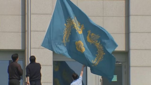 헌법재판소가 윤석열 전 대통령의 파면을 선고한 4일, 서울 용산 대통령실 청사에서 관계자들이 봉황기를 하기하고 있다. / MBC