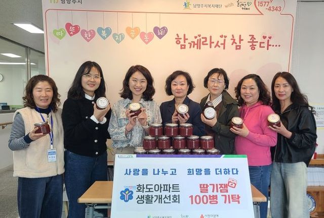 [와이뉴스] 남양주시 화도읍 아파트생활개선회는 지난 3일 취약계층을 위한 딸기잼 100병(50kg 상당)을 동부희망케어센터에 전달했다.