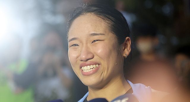 배드민턴 국가대표 안세영이 취재진과 인터뷰하며 기쁨의 눈물을 흘리고 있다. 기사 이해를 돕기 위한 자료 사진/ 연합뉴스
