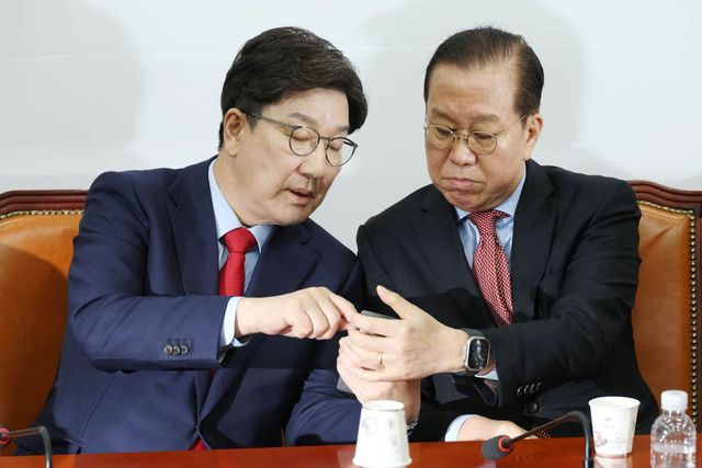 국민의힘 지도부 권성동 원내대표와 권영세 비상대책위원장. / 뉴스1