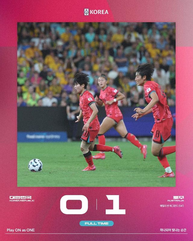 호주에 패한 한국 여자 축구대표팀 / 대한축구협회 인스타그램