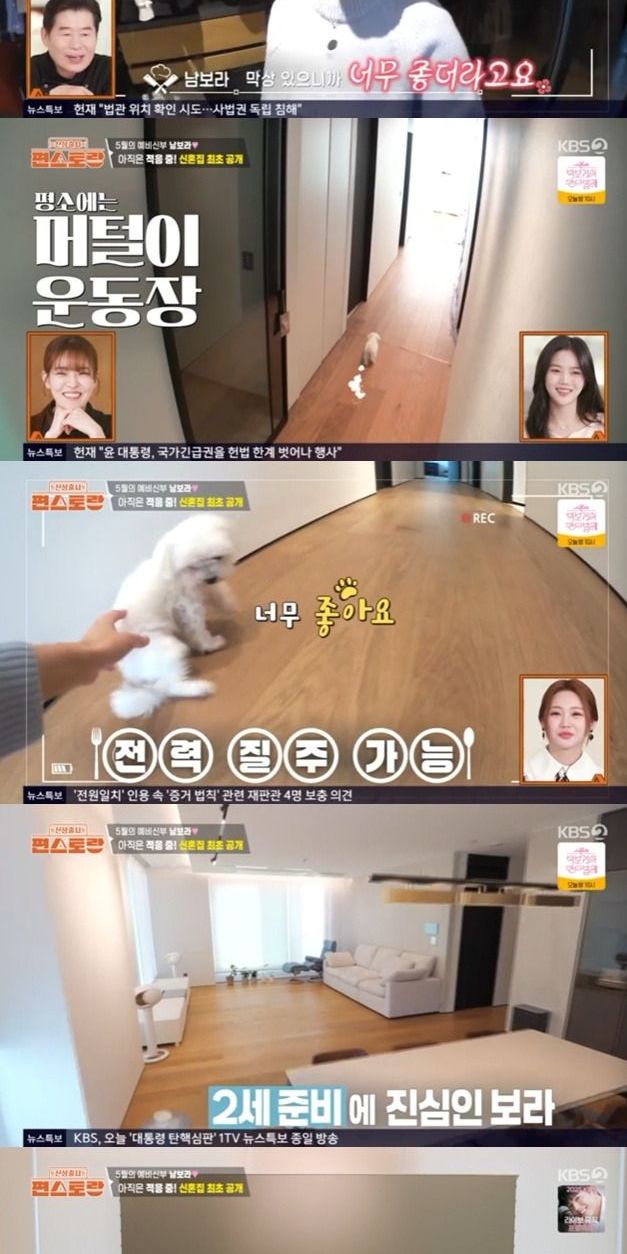 안방과 바로 연결된 드레스룸도 보여줬다. 남보라는"살면서 드레스룸이라는 걸 처음 가져본다. 막상 있으니 너무 좋다. 심지어 예쁘다"라며 흐뭇해했다. 반려견 머털이는 긴 복도에서 뛰어다녔다.