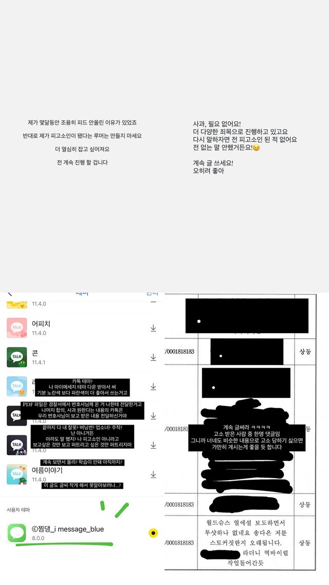 그는 이어 "제가 몇 달 동안 피드 안 올린 이유가 있죠. 반대로 제가 피고소인이 됐다는 루머는 만들지 마세요. 더 열심히 잡고 싶어져요. 저는 계속 진행할 겁니다"라며 "사과, 필요 없어요! 더 다양한 죄목으로 진행하고 있고요. 계속 글 쓰세요! 오히려 좋아"라고 전했다.