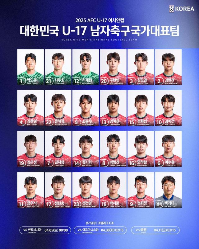 한국 남자 17세 이하(U-17) 축구대표팀 명단. / 대한축구협회 인스타그램