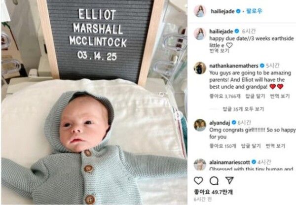 [메디먼트뉴스 박규범 기자] 에미넴의 딸 헤일리 제이드가 아들의 이름에 아버지의 본명을 사용하여 감동을 주고 있다.