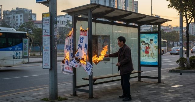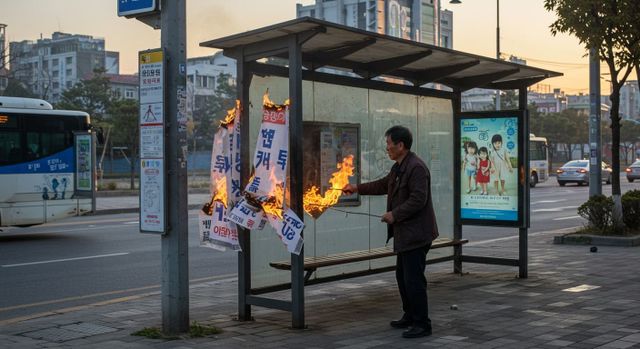 A 씨는 이날 오전 9시 20분께 강북구 한 버스정류장 인근에 걸려 있던 민주당 의원의 현수막에 불을 지른 혐의를 받고 있다.