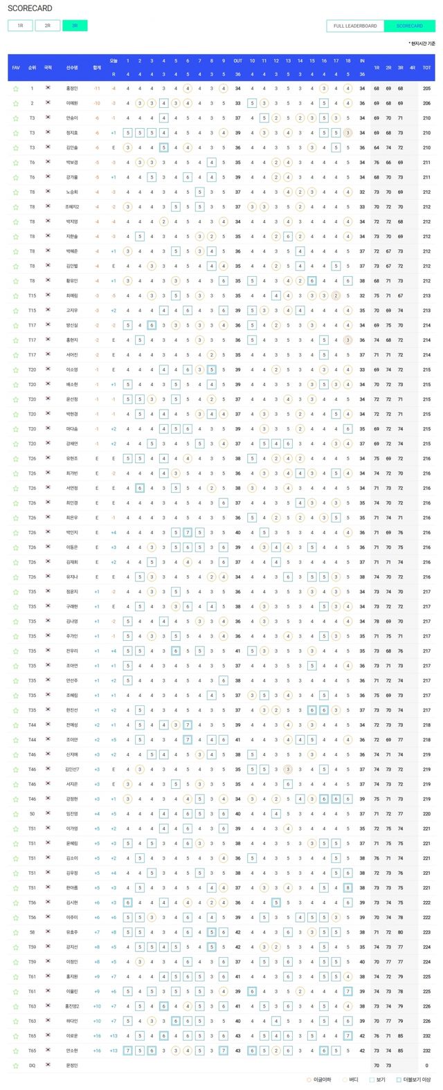 1.홍정민 -11, 2.이예원 -10, T3.암송이-정지효-김민솔 -6, T6.박보겸-강가율 -5, T8.노승희-조혜지2-박지영-지한솔-박혜준-김민별-황유민 -4, T15.최예림-고지우 -3, T17.방신실-홍현지-서어진 -2, T20.이소영-배소현-윤선정-박현경-마다솜-강채연 -1, T26.유현조-최가빈-서연정-최민경-최은우-박민지-이동은-김재희 E, T35.정윤지-김나영-조아연-안선주-한진선 +1, T44.전예성 +2, T46.김민선7-신지애 +3, 50.임진영 +4, T51.윤혜림-한아름 +5, T59,이정민 +8, T61.홍지원-이율린 +9, T65.안소현 +16.