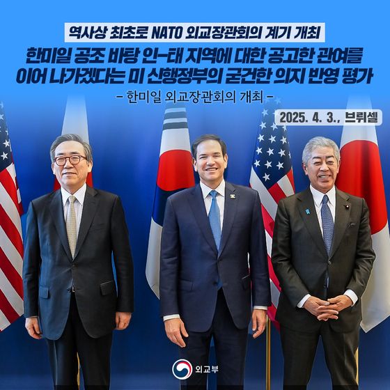 외교부는 조태열외교부 장관이 지난 3일브뤼셀에서 마르코 루비오 미국 국무장관 및 이와야 다케시 일본 외무대신과 한미일 외교장관회의를 열었다며 4일 이같이 밝혔다.