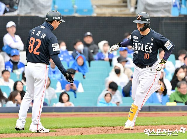 하지만 드라마는 9회 2사부터 시작됐다. 임종찬이 타석에 들어선 뒤 볼카운트 2-2에서 김재윤의 피치클락 위반으로 볼넷 출루했다. 그리고 노시환이 좌전안타로 출루하며 주자 1・2루를 만들어 기회를 살렸다.