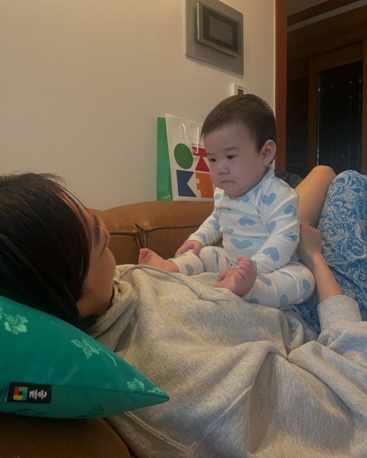 사진 속에는 아내 이은형이 아들 현조를 배 위에 올려놓고 행복한 시간을 보내는 모습이 담겨있다. 특히 몰라보게 자란 현조가 안정적으로 앉아있는 모습은 팬들의 시선을 사로잡았다.