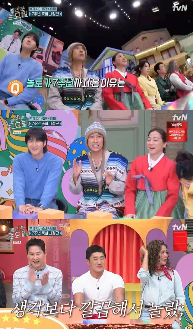 김동현의 동갑내기 친구로 '놀토' 방문 때마다 강렬한 존재감을 각인시킨 코요태 빽가, '놀토' 최다 출연자 이용진, 엉뚱미 넘치는 오마이걸 미미가 게스트로 출연해 7주년 특집을 빛냈다.
