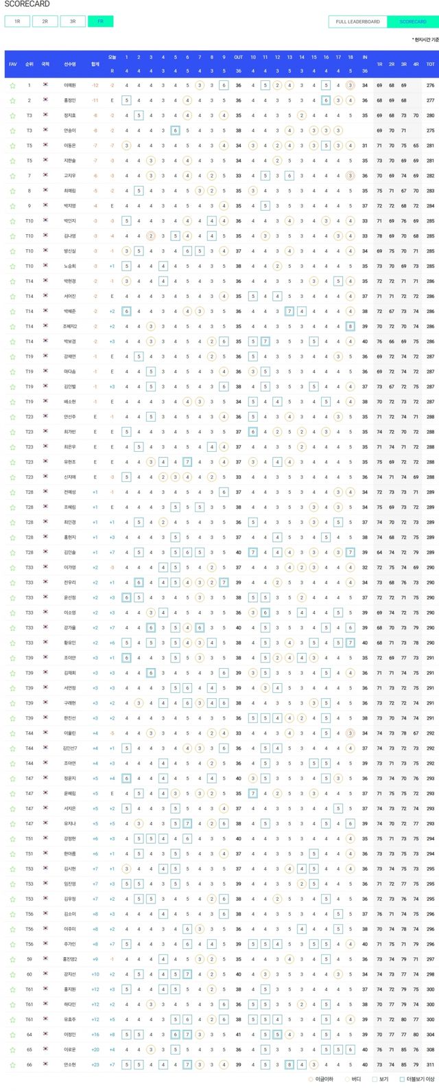 -4라운드 72홀 스트로크플레이 방식(2라운드 종료 공동 60위 컷오프)