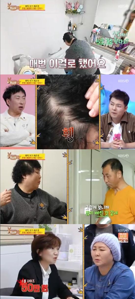 6일 방송된 KBS 2TV '사장님 귀는 당나귀 귀'에서는 이순실이 탈고 고민을 전하며 가발 가게를 방문하는 모습이 전파를 탔다.