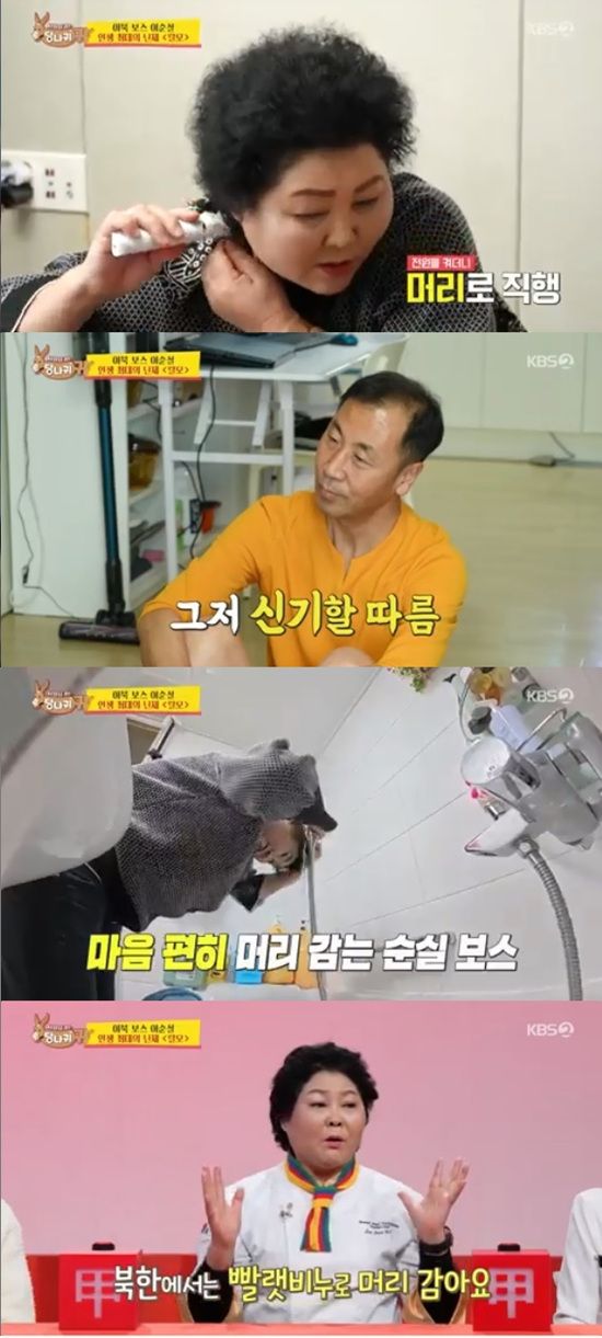 이순실은 강아지 털 깎는 기계로 거침없이 머리카락을 잘랐다. 이순실은 "가위보다 더 깔끔하게 되더라"며 만족감을 드러냈다.
