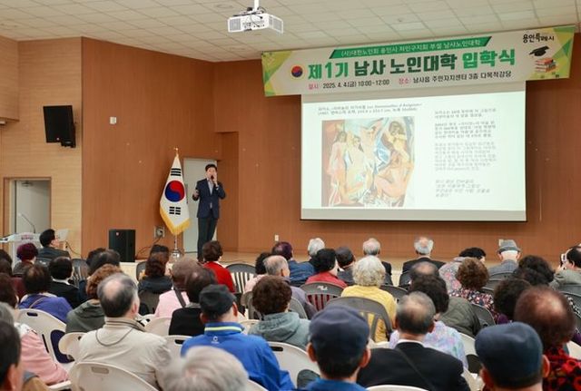 [와이뉴스] 이상일 용인특례시장은 4일 처인구 남사읍 주민자치센터 3층 대강당에서 열린 ‘제1회 남사노인대학 입학식’에서 입학생 110여 명을 대상으로 특별 강연을 했다.