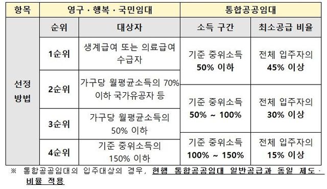 (지역제안형 특화주택) ‘24년 하반기 공모부터 도입된 유형으로 지자체 등 사업시행자가 출산, 귀농·귀촌 장려 등을 위하여 지역 수요에 따라 입주자격, 선정방법, 거주기간 등을 맞춤형으로 설정할 수 있다.