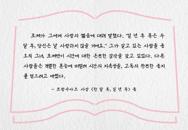 소설, 영화의 제목으로도 사용된 이 유명한 문장은 프랑스의 대표적인 작가, 프랑수아즈 사강이 한 말이다.