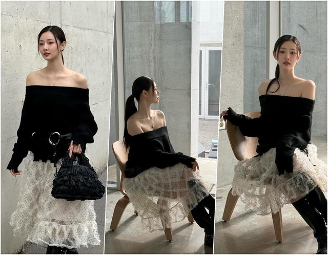 사진 속 이시안은 블랙 색상의 오프숄더 티셔츠와 시스루 스커트를 입고 가녀린 몸매를 드러냈다. 특히 이시안은 머리를 하나로 묶은 스타일로 연출해 직각 어깨라인을 돋보이게 했다.