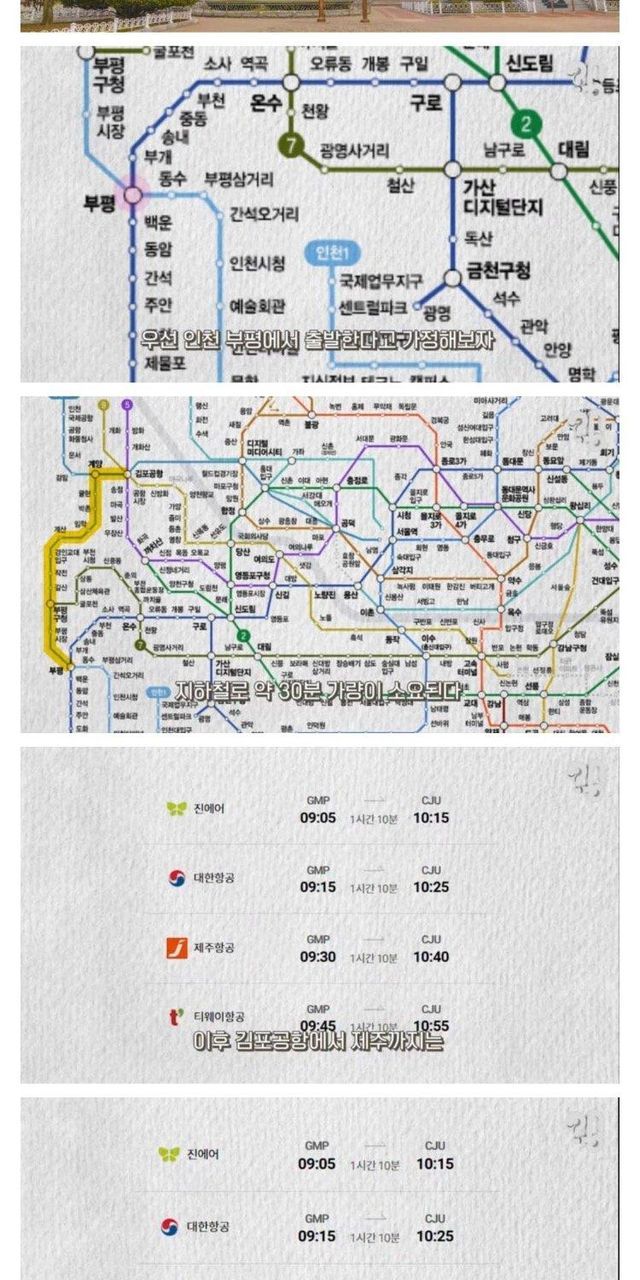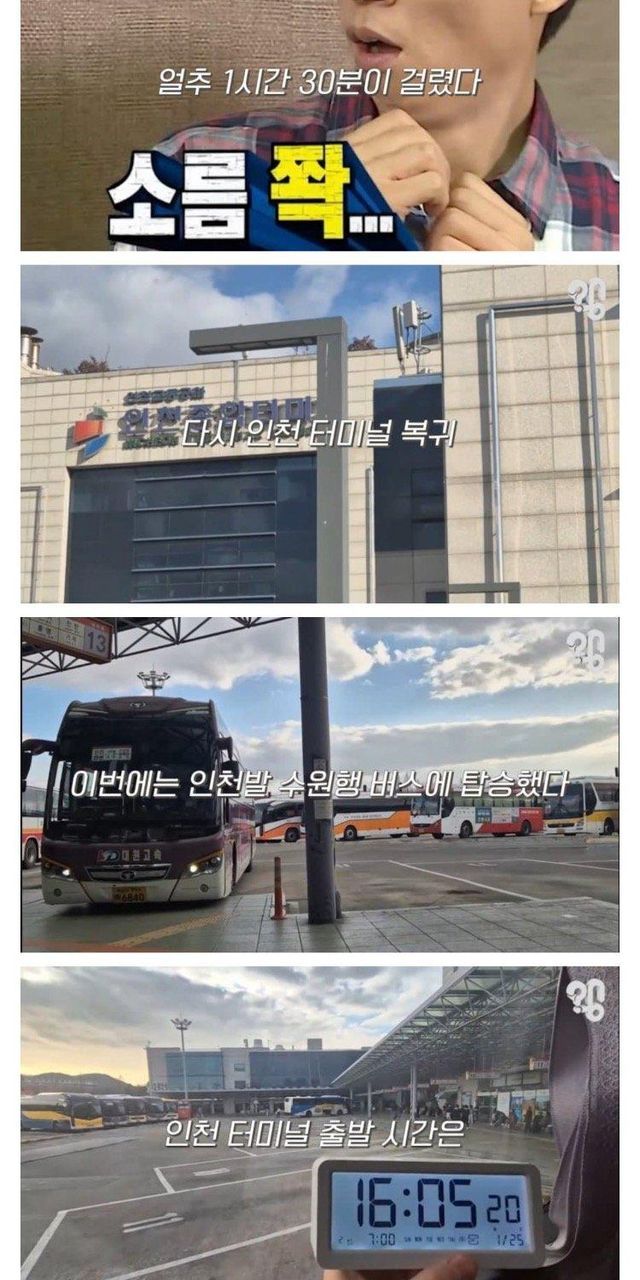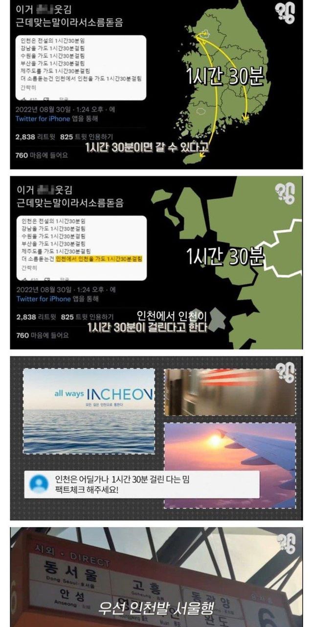 인천에서 어디를 가든 1시간 30분이 걸리는지 확인해보기