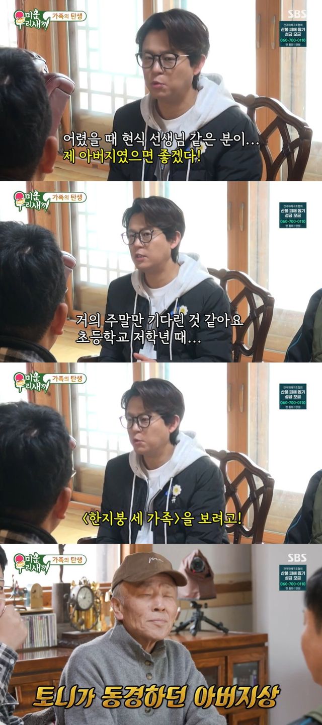 한편, 김준호는 토니안에게 "원래는 임현식을 어떻게 생각했냐"고 물었고, 토니안은 "어렸을 때 현식 선생님 같은 분이 아버님이었으면 좋겠다고 생각했다. 거의 주말만 기다렸다. '한지붕 세 가족'을 보려고"라 답해 눈길을 끌었다.