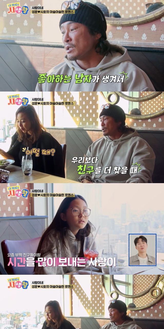 이어 야노 시호는 추성훈에 사랑의 사춘기에 대해 물었다. 추성훈은 "당연히 느끼지 않을까. 우리보다 친구를 더 찾을 때. 고등학생 때 제일 힘들 거다. 좋아하는 남자가 생겨서 만나고 헤어지면 더 힘들다"라며 사랑의 미래 남자 친구에 벌써 서운해 하는 모습을 보였다.