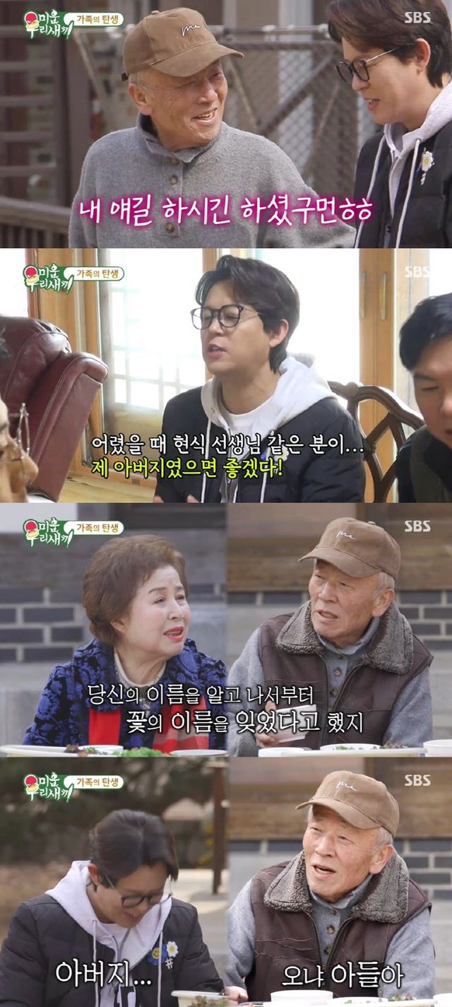 지난 6일 방송된 SBS ‘미운 우리 새끼’에서는 ‘최고령 미우새’ 임현식이 1년 만에 소개팅 상대 토니의 엄마 이옥진 여사를 다시 만나 화제가 되었다. 김준호, 임원희와 함께 찾아온 토니안을 반갑게 맞은 임현식은 “혹시 어머님이 나에 대해 묻는 말은 없던가?”라며 궁금해했다. 평소 임현식을 어떻게 생각했냐는 김준호의 질문에 토니안은 “어렸을 때 현식 선생님 같은 분이 아버지였으면 좋겠다 생각했다. ‘한 지붕 세 가족’에 나오는 순돌이었으면 좋겠다 생각했었다”라고 말해 모두를 놀라게 했다. 한편 토니안은 “어머님이 밝게 웃으시는 걸 오랜만에 봐서 기분이 묘했다. 어머니가 남성분과 웃으면서 대화하는 걸 처음 본 것 같다”라며 두 사람의 소개팅을 본 솔직한 마음을 밝혔다. 어머니가 외국어를 잘하는 지적인 사람을 좋아한다는 토니안의 이야기를 들은 임현식은 “마드리드 대학에서 수업도 들었다”라며 유창한 스페인어 실력을 뽐냈고, 토니안만 유독 편애하는 모습으로 웃음을 자아냈다.