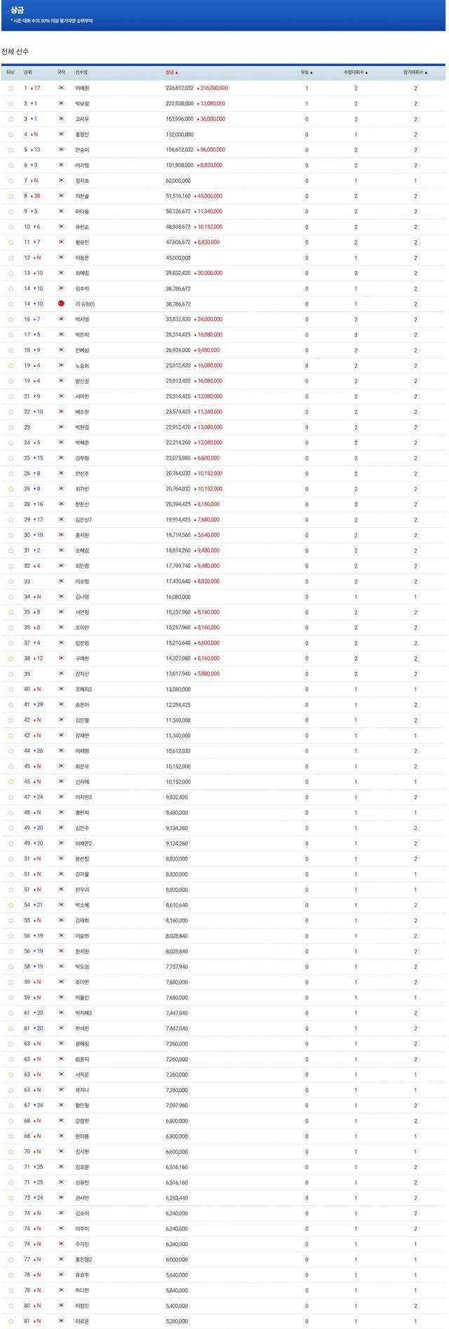 ■상금순위(두산건설 위브 챔피언십 종료 기준)