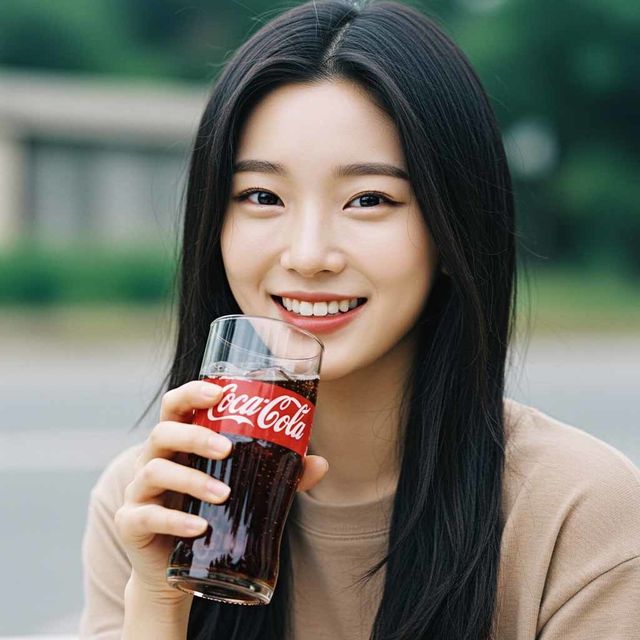 코카콜라를 마시는 여성. AI 툴로 제작한 이미지.