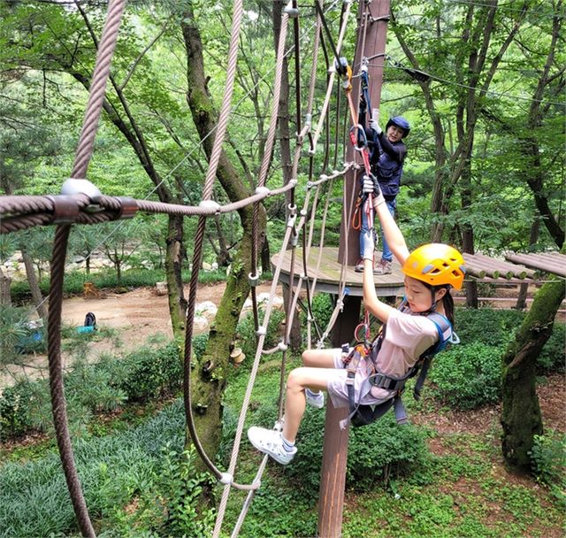 아이부터 어른까지 함께 즐길 수 있는 ‘관악산 모험숲’은 총 21개 코스로 구성된 트리 어드벤처 시설로, 와이어 로프를 타고 나무 위를 걷는 짜릿한 체험을 제공해 가족 단위 참여자들의 호응이 높다.