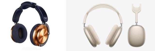 다이슨 '온트랙' 노이즈 캔슬링 헤드폰(왼쪽)과 애플 '에어팟 맥스' 스타라이트 제품 이미지. ⓒ 각 사