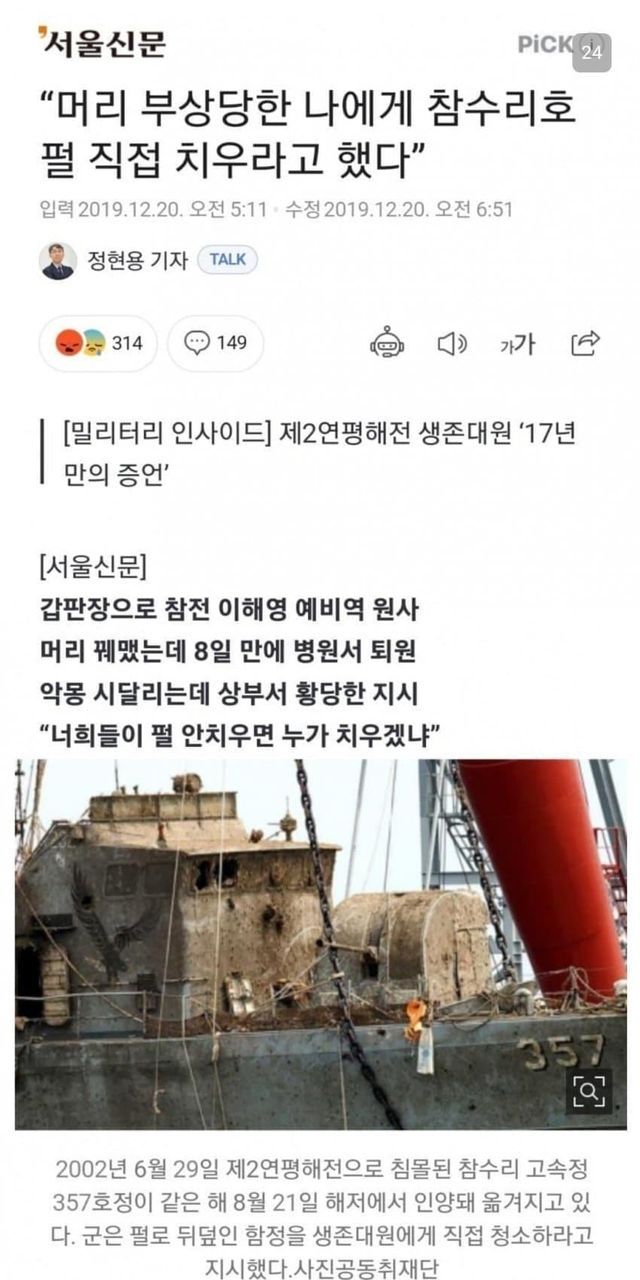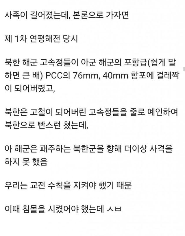 참수리 두대중 한대에게 일방적으로 쳐맞아서 배 침몰해가는 와중에도